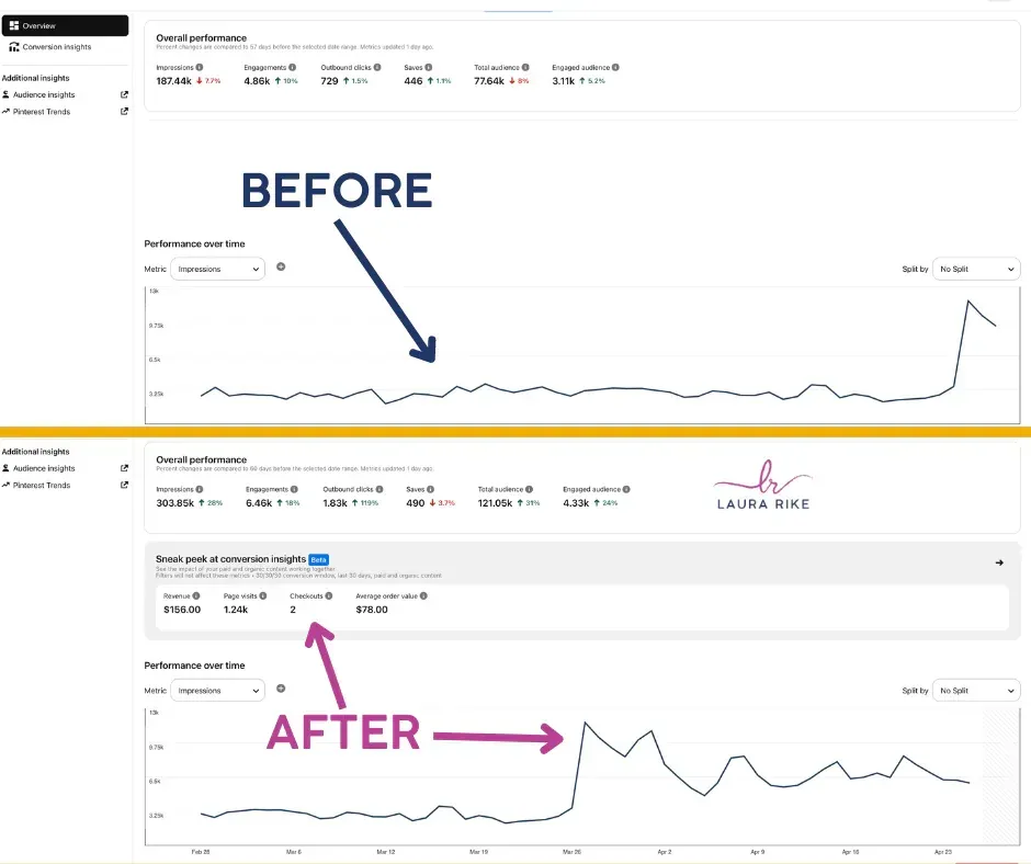 That’s when things clicked. I learned how to turn Pinterest into a discovery engine, one that didn’t just bring traffic, but brought the right traffic. Leads became clients. Pins became assets. And I built a rebranded business that fully funded my dream wedding and scaled to six figures with more flow than frenzy.