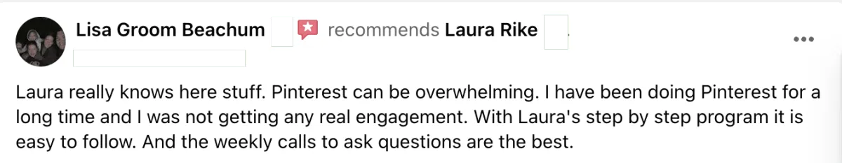 What sets the coaching program apart is our unique blend of comprehensive learning modules, and personalized support. We focus on providing practical strategies, actionable steps, and ongoing guidance to ensure your success. Our approach combines the latest Pinterest best practices with a deep understanding of human psychology and marketing, empowering you to achieve outstanding results while enjoying a supportive and collaborative environment.